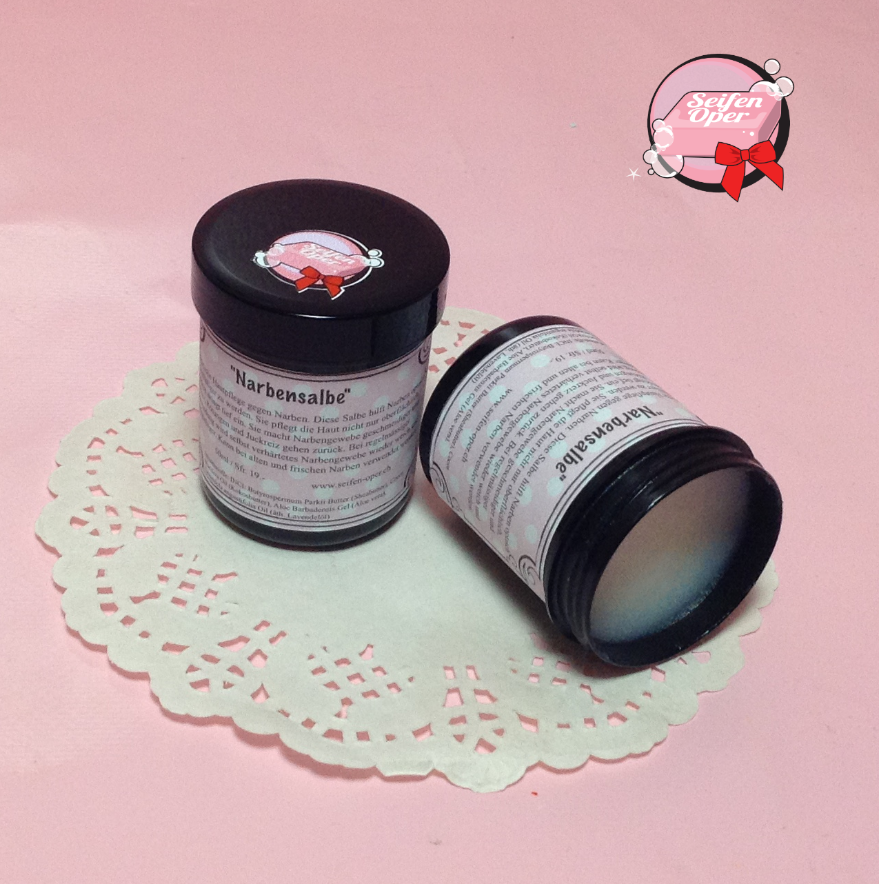 Hier haben wir eine Salbe, die frischen und alten Narben dabei hilft, optisch unauffälliger zu werden. Zwar kann man eine Narbe nicht ganz verschwinden lassen, jedoch kann man das optische Erscheinungsbild erheblich verbessern mit der richtigen Pflege. Unsere Narbensalbe kommt ohne Konservierungsstoffe, Chemie und Silikone etc. aus. Sie besteht aus hochwertiger Sheabutter, Kokosbutter, Aloe Vera und ätherischem Lavendelöl. Und das ist alles! 🙂