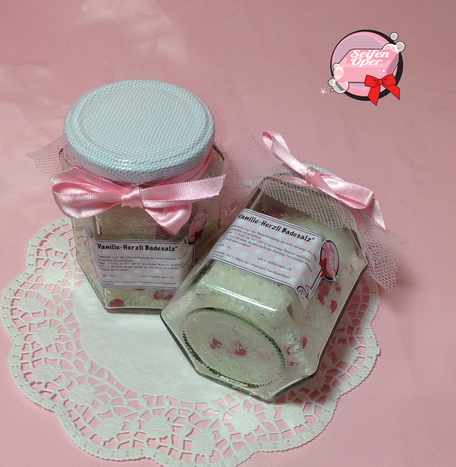 Beste Meersalzkomposition. Das reine Natur-Badesalz regt die Durchblutung an und versorgt die Haut mit wohltuenden Mineralien und pflegenden Ölen, welche die Haut geschmeidig machen. Angereichert mit Zuckerdekor (welches sich im Wasser auflöst).