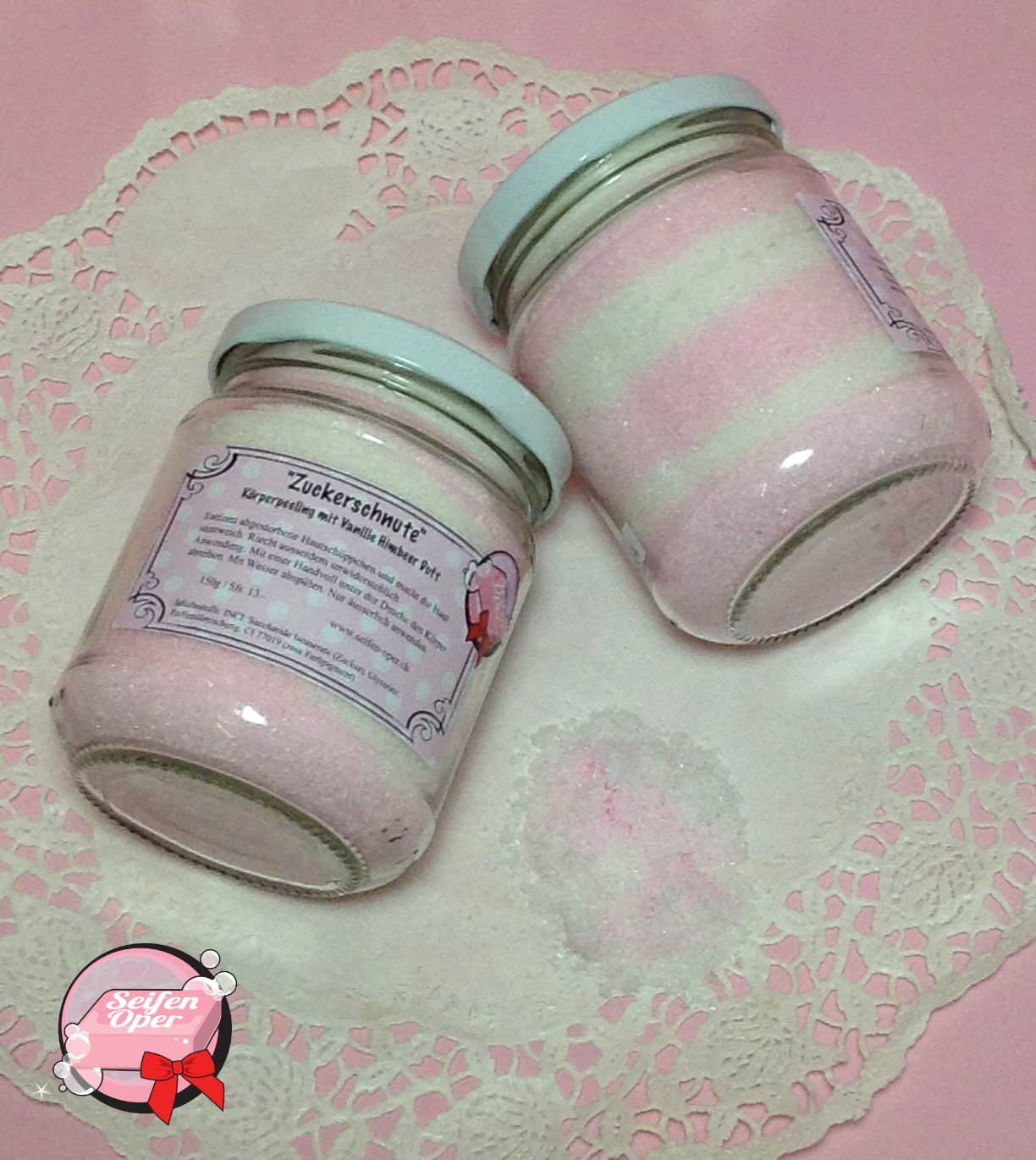 Inhaltsstoffe: INCI: Saccharide Isomerate (Zucker), Glycerine, Vanille & Himbeere Parfümöl, Ci 77019 (rosa Farbpigment)
